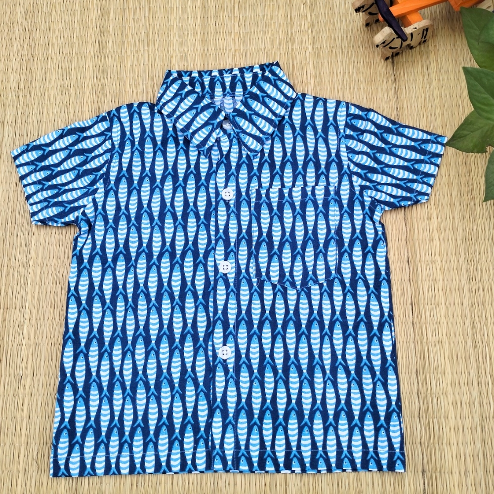 - Fabric design/color: All Over Fish Print On Navy Color Fabric.