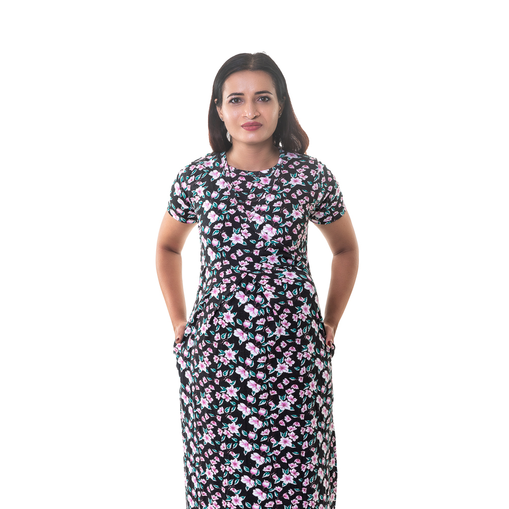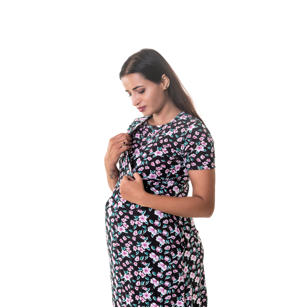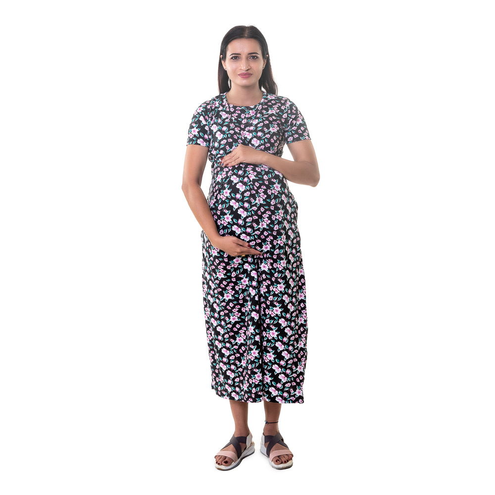 Crossfold Maternity Maxi – Dark Flora